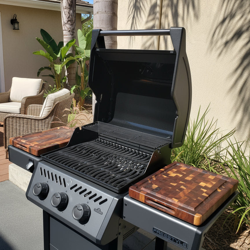 These BBQ Boards® are exclusively designed for the Napoleon Freestyle grills. While adding the utility of cutting boards & serving trays they also add beautiful aesthetics!